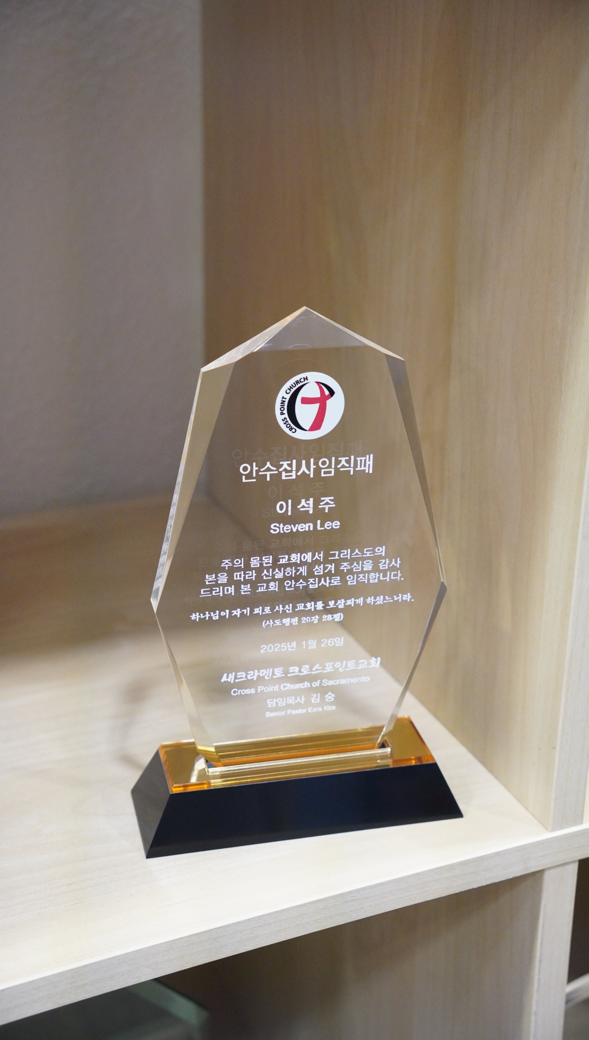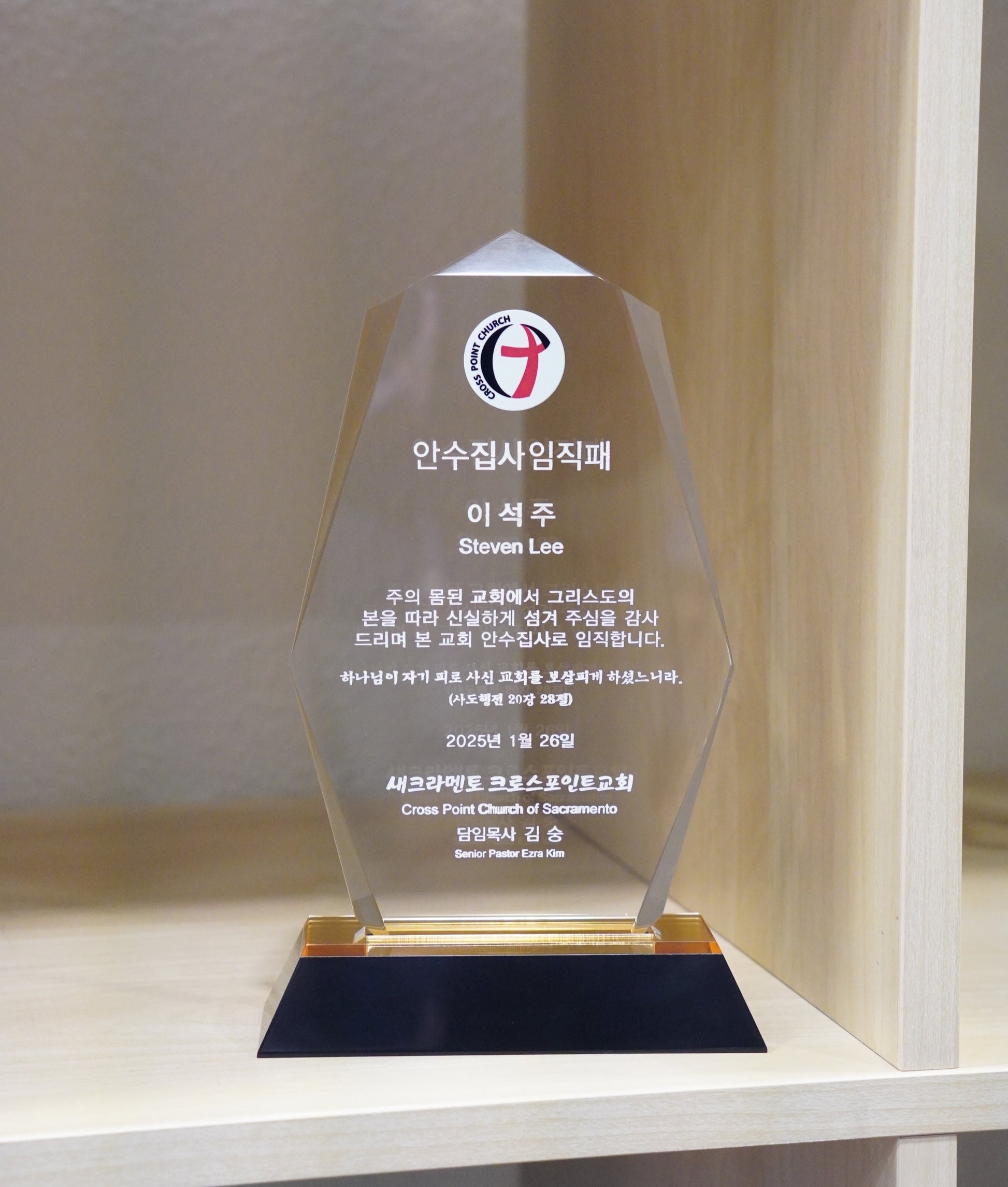 되시기를 바라며 전 성도들의 감사의 마음을 담아 이 패를 드립니다.
